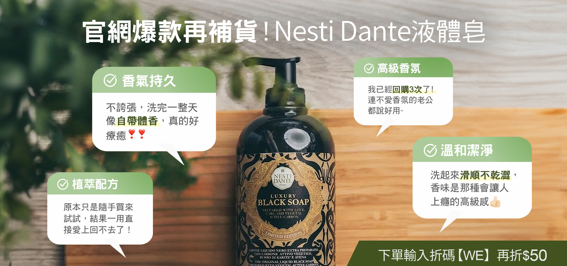 首購限定 | 結帳輸入折扣碼【WE】再折50元